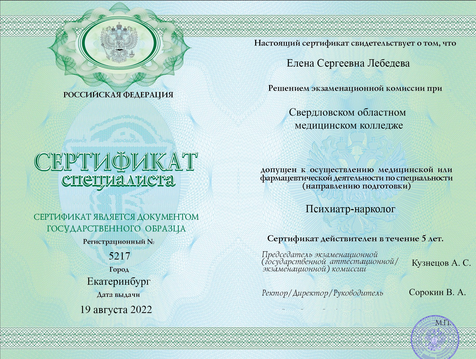 Елена Сергеевна Лебедева врач нарколог клиники доктора Стукаловой в Волхове